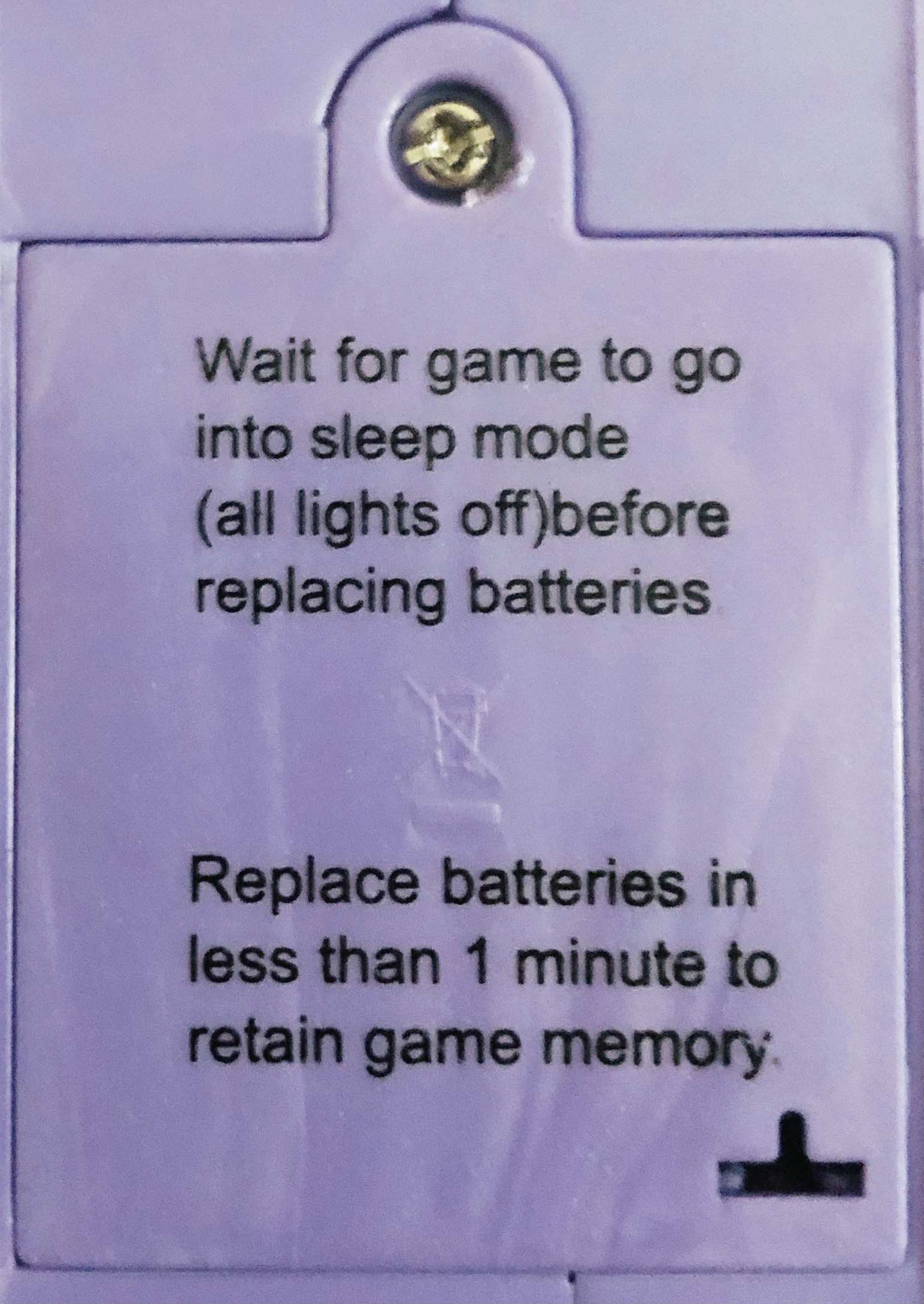 Game Memory warning on the battery cover.